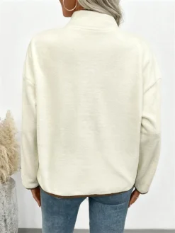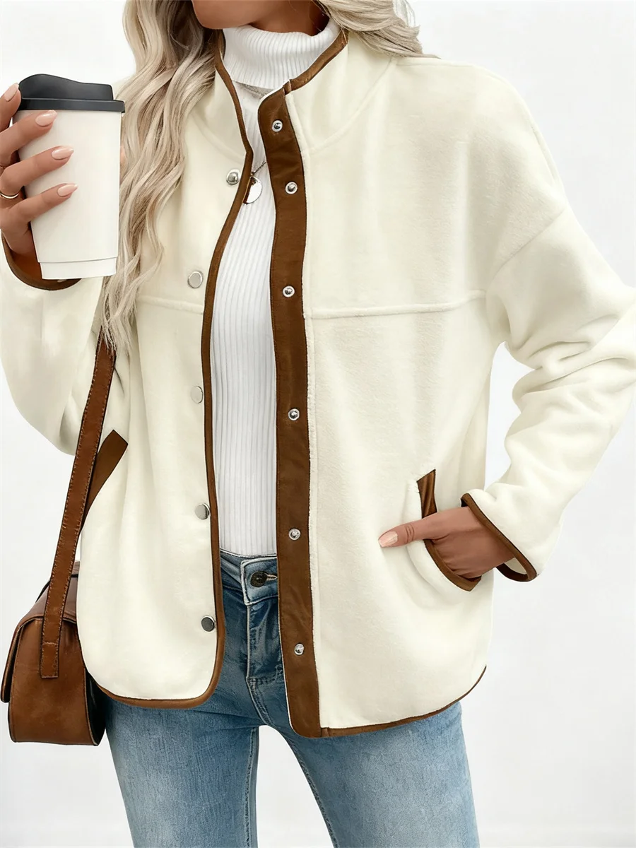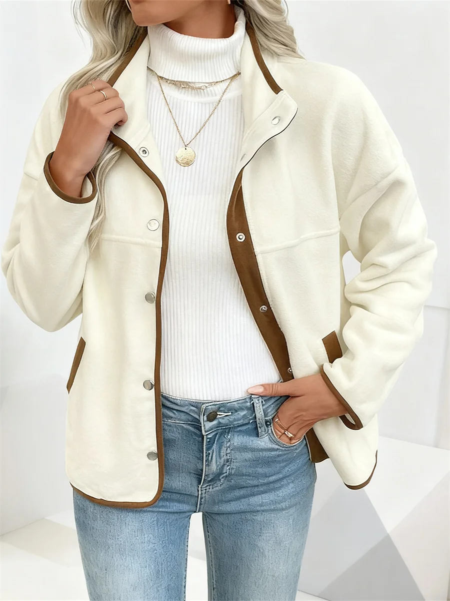 Women Casual Jacket, Long Sleeve Contrast Color Button Closure Fall Jacket Outwear