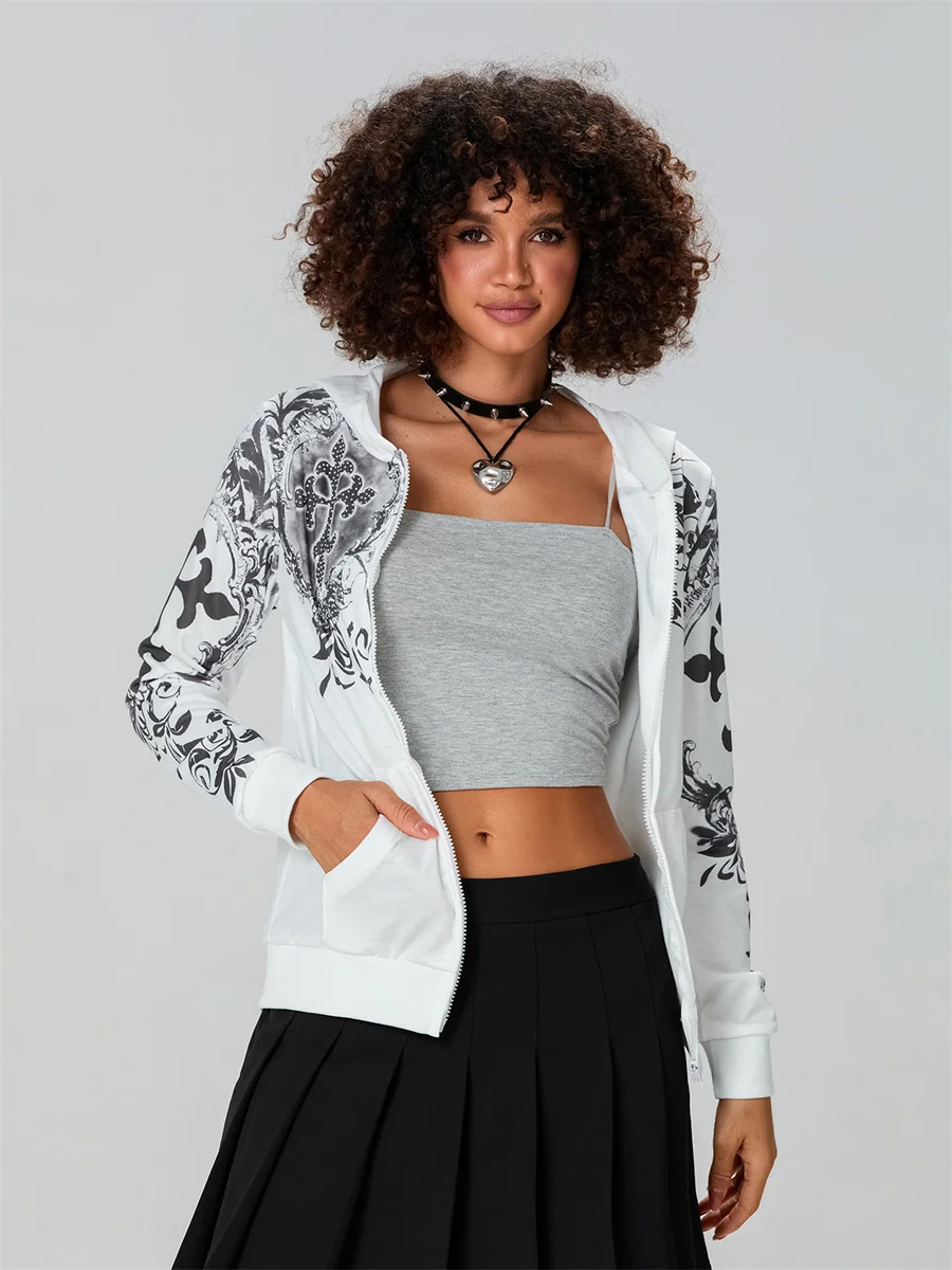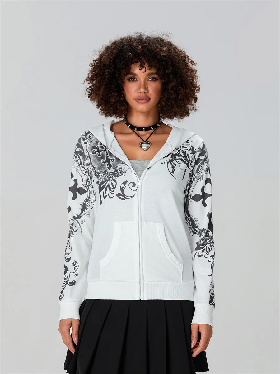 Women Hoodie, Long Sleeve Vintage Print Sweatshirt with Pockets for Street Casual
